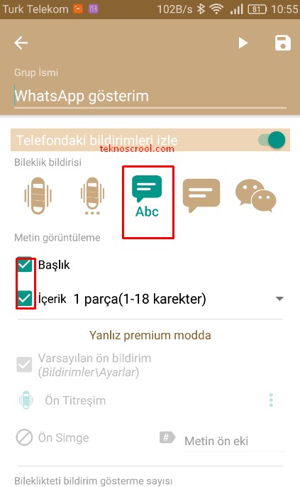 Eşleştirme yaptıktan sonra sol taraftaki menüde bildirimler sekmesine giriş yaptığınızda WhatsApp ve SMS ayarlarını göreceksiniz. Bu ayarların içine girip ABC kategorisini seçmeniz gerekmektedir.